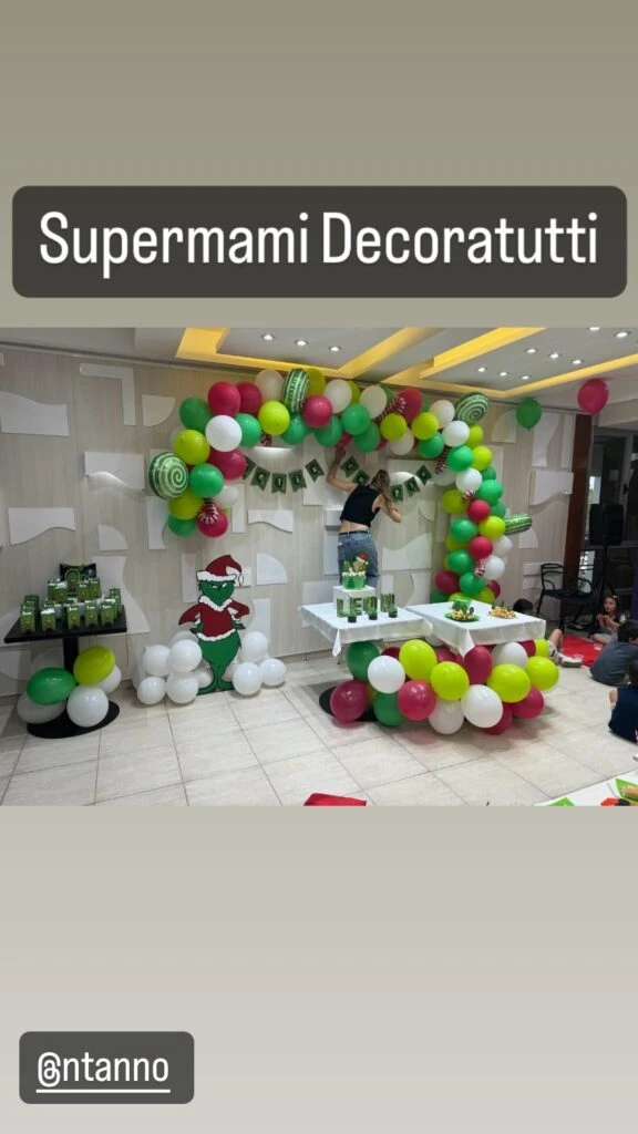 A través de sus redes sociales, el comunicador compartió parte de la decoración del festejo, que tuvo como temática el personaje de El Grinch. "Supermami Decoratutti", escribió Nacho, mostrando a su pareja encargándose de la organización del salón.