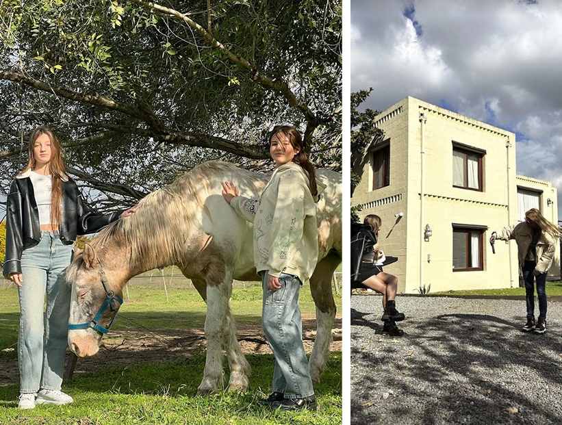 Las chicas, de 13 y 9 años, posaron en distintos sectores del establecimiento donde Nicole alberga perros y caballos restacados además de otros animales de granja como gallinas y pavos.