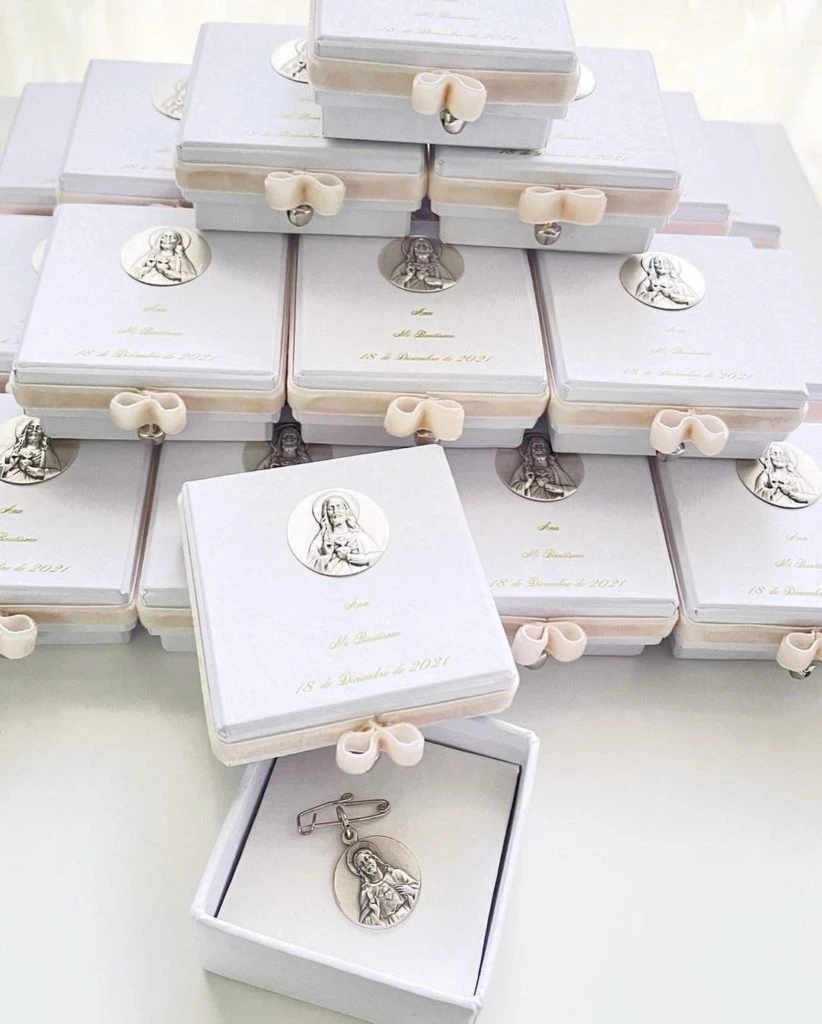 En cuanto a los souvenires, se trató de una medallita con la misma imagen, amorosamente presentado en una caja blanca.
