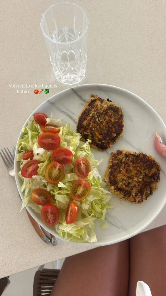Ya de vuelta en el país, Cami publicó nuevas imágenes en sus historias: primero, un reencuentro con una amiga en el gimnasio acompañado de la frase “Volvimos”. Más tarde, mostró un almuerzo saludable de croquetas de huevo con zanahoria y ensalada, destacando su decisión de retomar los buenos hábitos durante esta etapa de embarazo.