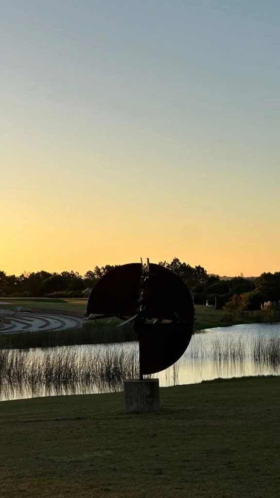 Una de las fotos muestra una escultura a la vera de un lago que formó parte del recorrido, uno de los tantos paisajes rurales típicos de la zona que es ideal para practicar este deporte.