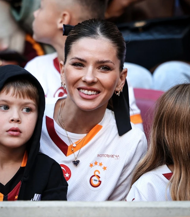 Icardi se ubicó en un palco donde también se sentaron la China y sus tres hijos. La actriz llevó la camiseta del equipo turco y un jean, más un peinado de pony tail. Al sentarse, sostuvo a upa a su hijo más chico, Amancio, de 4 años, mientras las nenas permanecían a su lado.