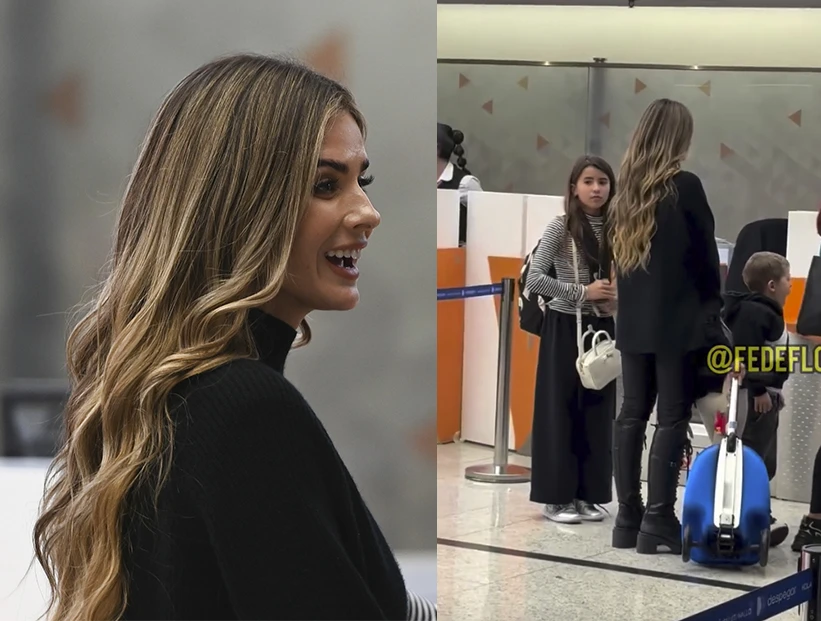 Según informó el periodista Fede Flowers en su cuenta de Instagram, la actriz fue vista en el aeropuerto de Ezeiza haciendo el check-in con sus hijos, acompañada por su madre, Marcela Riveiro, y su estilista personal, Juanma Cativa. Llevaba consigo más de diez valijas, y en diálogo informal con allegados, afirmó que regresará en dos semanas para que los chicos puedan retomar el ciclo escolar tras las vacaciones de invierno.