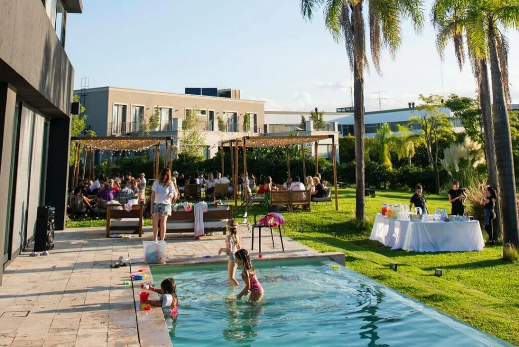 Una celebración al aire libre que incluyó fútbol, pileta, una barra de tragos y, para soplar las velitas, una chocotorta.