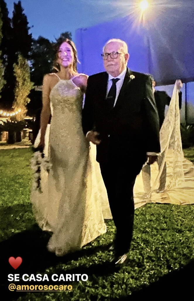 "Se casa Carito" escribió en Instagram el periodista y compañero de canal de Carolina, Gonzalo Aziz, en su cuenta de Instagram. En la fotografía, se ve a la novia acompañada por su padre, mientras sonríe espléndida.