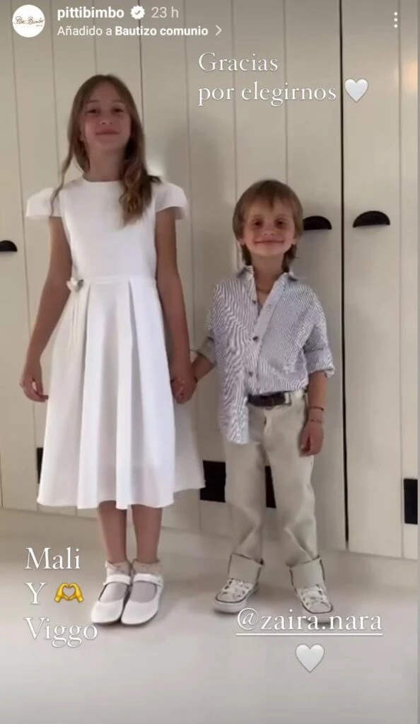 Por medio de sus redes sociales, la modelo compartió algunas fotos de esta ceremonia religiosa, en la que estuvo su hermana Wanda Nara. Acompañada de Viggo, su hermanito, la niña de 8 años posó con su vestido y también se mostró escuchando la misa de manera atenta.