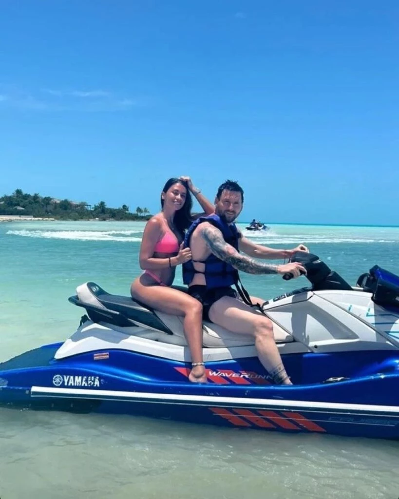 En la última historia que compartió la rosarina a sus 36 millones de seguidores, se puede apreciar cómo disfrutan de los paseos acuáticos, se subieron a una moto de agua y pasearon por el mar caribeño.