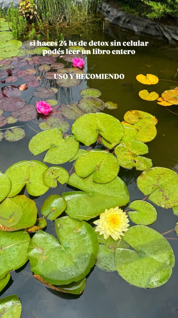 Además, la actriz aprovechó la experiencia para reflexionar sobre la importancia de desconectarse del celular. En una de sus historias escribió: “Si hacés 24 horas de detox sin celular podés leer un libro entero. Uso y recomiendo”, dejando en claro que el descanso también fue mental y digital.