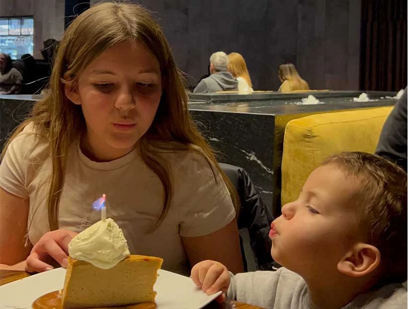 Allí, Sienna sopló las velitas en una mini torta que fue servida al momento del postre. La nena estuvo todo el tiempo acompañada por Luca, que quería ser él quien apagara las velas.