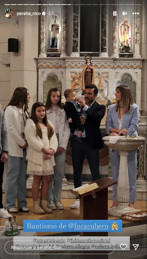 Este domingo Luca Cubero fue bautizado en la iglesia Nuestra Señora del Rosario, en una ceremonia donde estuvieron presentes sus hermanas, Indiana, Allegra y Sienna Cubero junto a Fabián Cubero y Mica Viciconte.