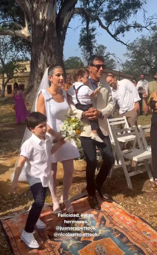 Realizada en una estancia de Pilar, la fiesta contó con la presencia de celebridades como Claudia Albertario, José María Muscari, Emiliano Rella, entre otros. Por supuesto, estuvieron sus padres Nicolás Repetto y Reina Reech, que se mostraron muy felices por ser parte de este evento. La boda con temática campestre se celebró al aire libre y contó con la tradicional lectura de votos de los novios.