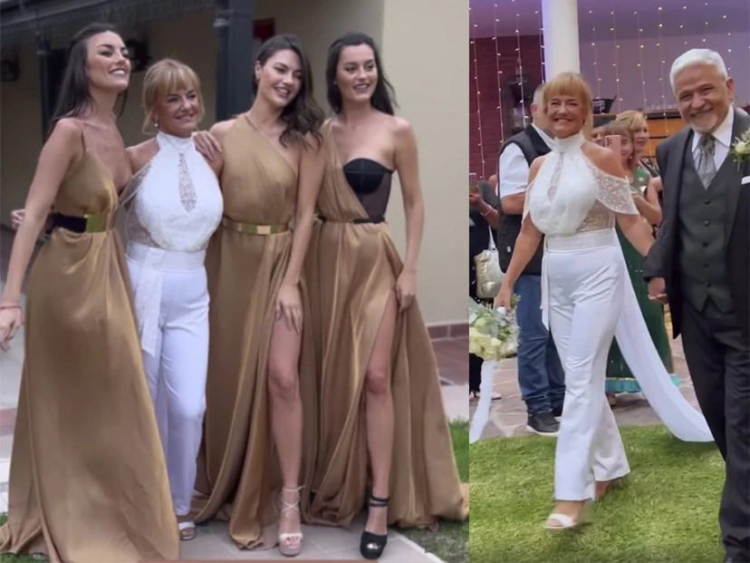 Los glamorosos looks de "Jujuy" Jiménez y sus hermanas Pilar e Inés en el casamiento de su mamá