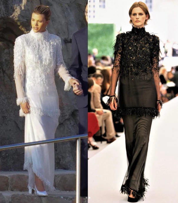 El vestido pre boda fue el mismo pero en versión blanco del diseño que llevó Stella Tenant en el desfile Chanel otoño invierno 1997.