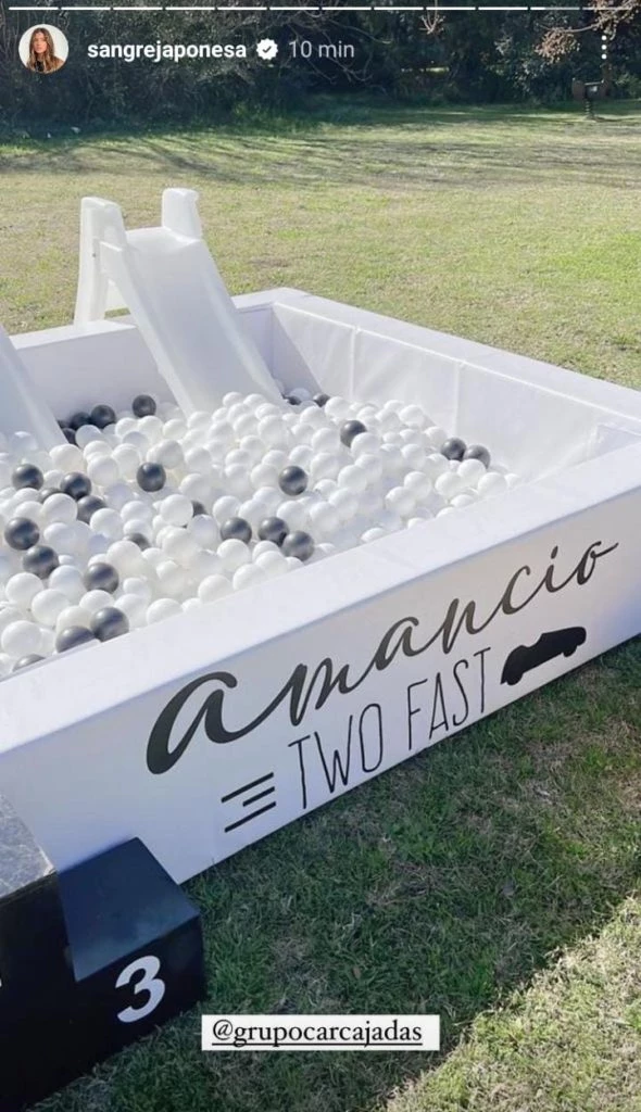 El día soleado y casi primaveral fue especial para darle marco a este cumpleaños celebrado al aire libre. Los chicos se sumergieron en un gran pelotero con bolas de telgopor, y Amancio pudo "manejar" su auto de carrera y hasta cargarle nafta.