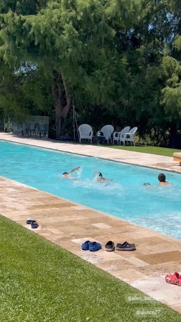 En cuanto al look de la cumpleañera, la niña llevó un traje de baño enterizo con imágenes de frutillas, en colores rosa y blanco. Mientras que su hermana mayor Rufina Cabré lució un conjunto de dos piezas, en tono bordó, y la China se la vio usando una malla celeste que combinó con piezas tejidas.
