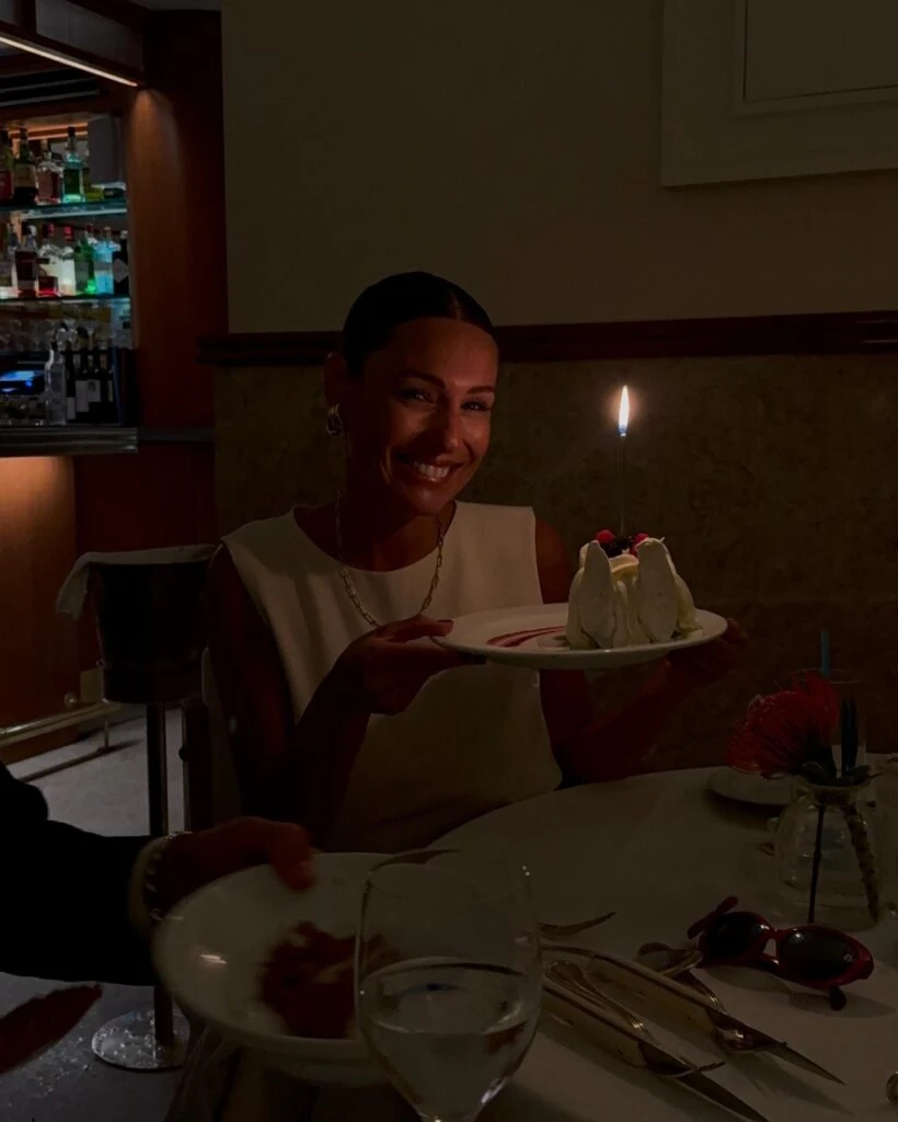 En las fotos que compartió este viernes, la modelo aparece muy feliz, cenando en un restaurante donde más tarde sus hijos le cantaron el feliz cumpleaños.