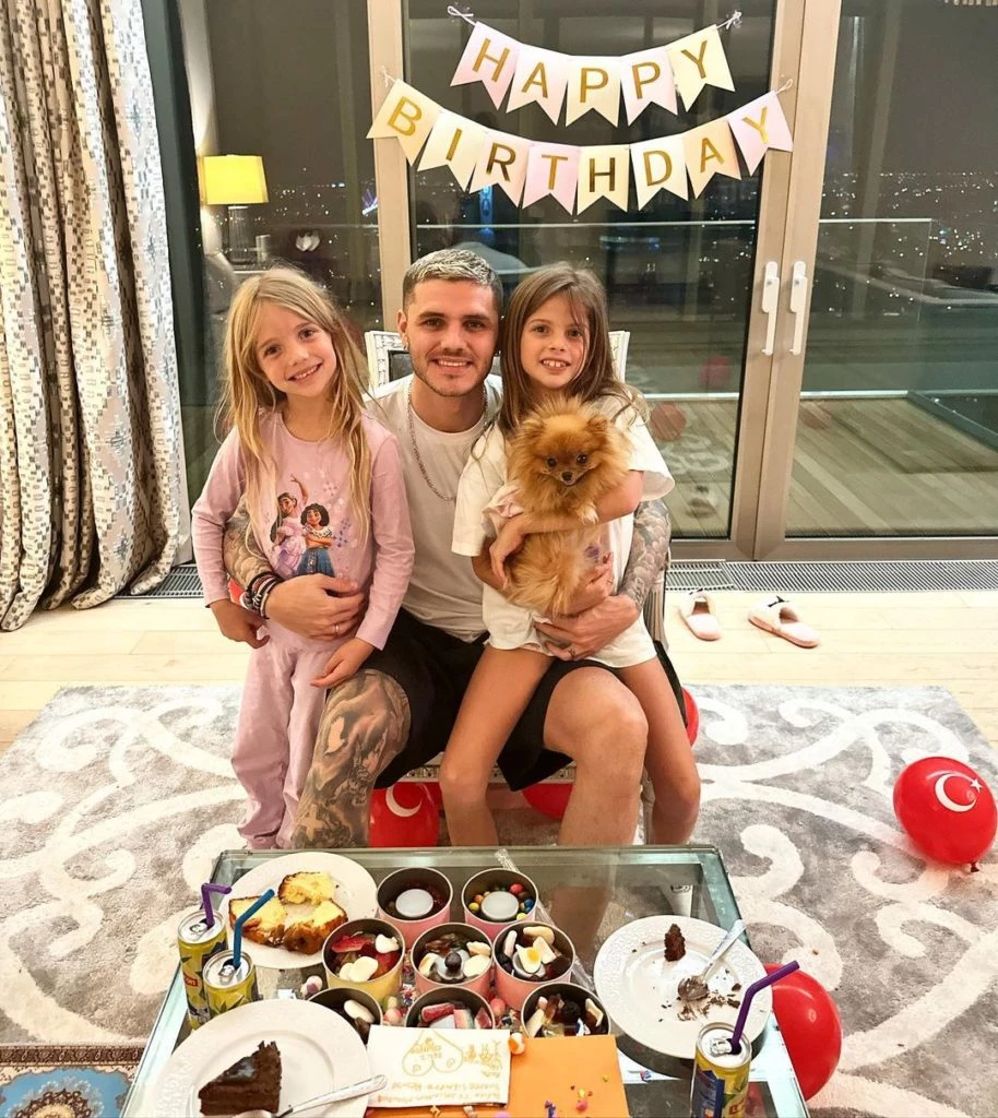 Lejos de realizar un gran festejo con amigos, Icardi prefirió reservarlo para pasarlo con las niñas, quienes se encargaron de la organización del cumple. Acompañado de una mesa de dulces, tortas y refrescos, las pequeñas celebraron con su padre de manera simple y en casa. Así, a través de sus redes, el ex de Nara compartió los detalles de este día, especial y diferente.