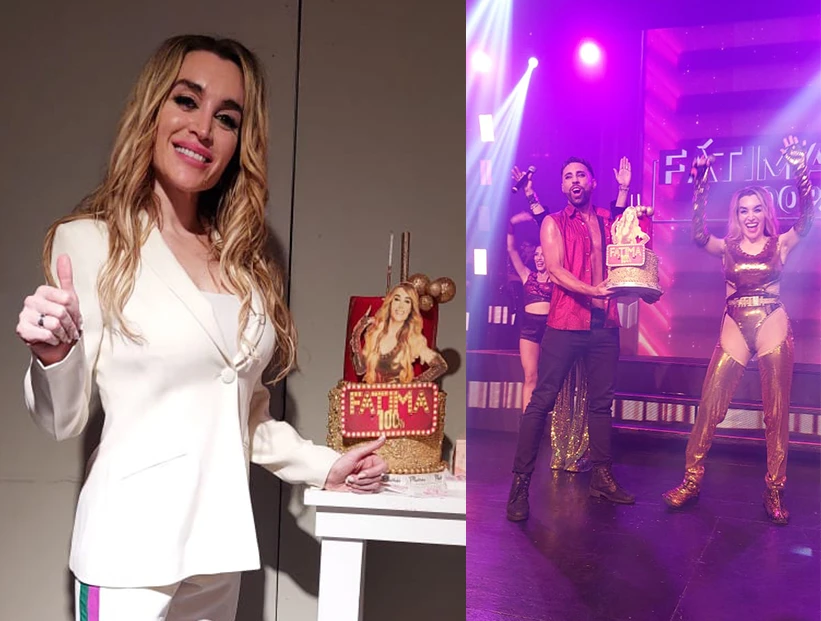 Su cuerpo de baile le alzanzó una torta -decorada con una imagen de ella y mucho dorado-, al finalizar la función y Fátima sopló las velitas junto a su público.