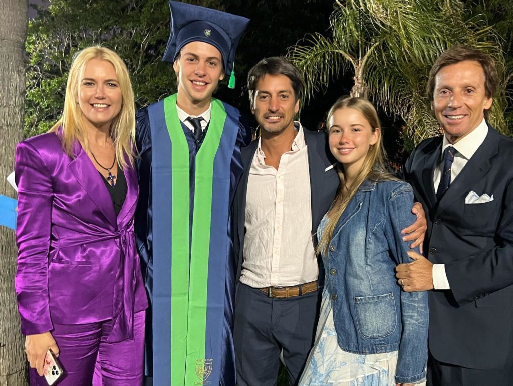 Benicio Gravier, uno de los hijos de Valeria Mazza, egresó del colegio secundario, y su familia lo acompañó en la ceremonia de entrega de medallas y diplomas.