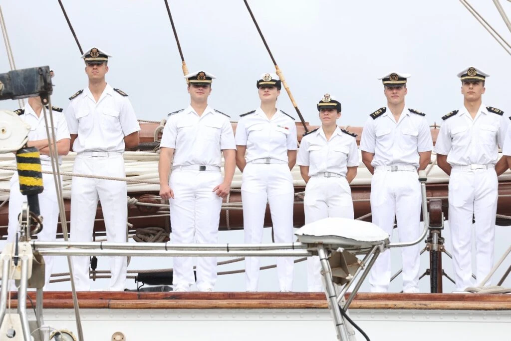 Letizia, que realizó un viaje no oficial para sorprender a su hija mayor, esperó ansiosa la llegada del navío de la Armada Española, mimetizándose con el resto de familiares de los 75 guardiamarinas que participan de esta experiencia única. Con una sonrisa que no podía ocultar, la reina observaba atenta el acercamiento del barco que traía consigo a su hija Leonor.
