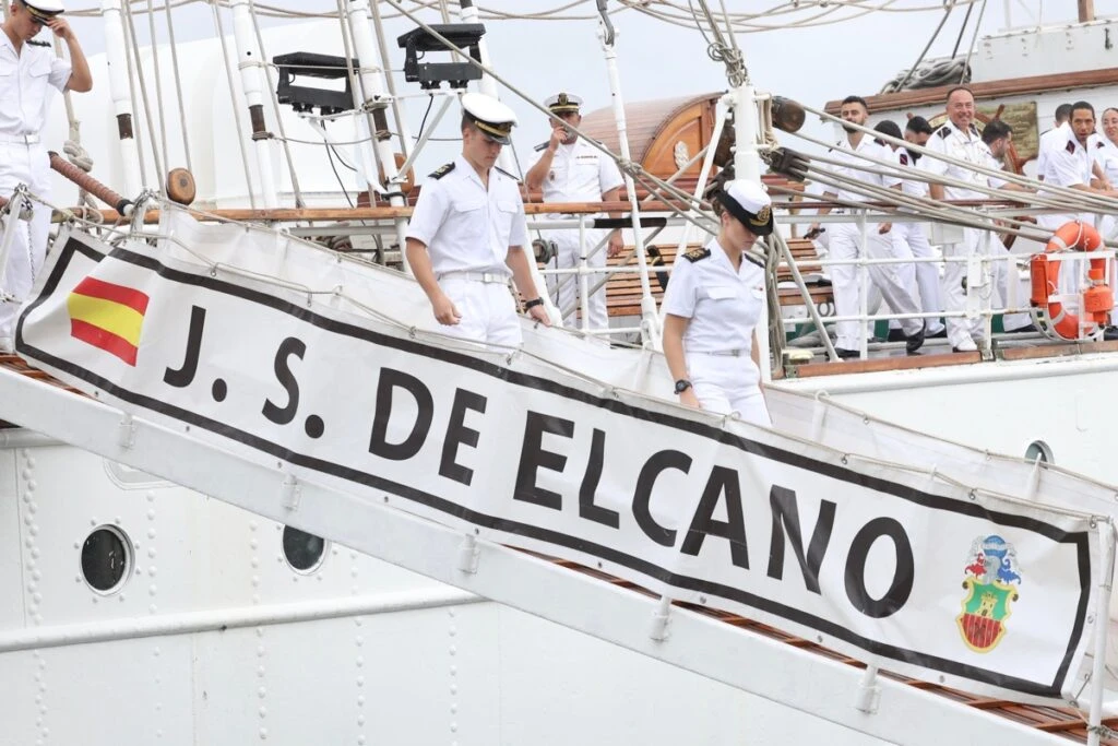 La llegada del buque fue una explosión de emociones. Desde la cubierta, los jóvenes marineros —Leonor incluida— saludaban con entusiasmo a sus seres queridos levantando sus gorras blancas al cielo. Segundos después, cuando la princesa bajó por la escalinata, se produjo el abrazo efusivo y profundo entre madre e hija.