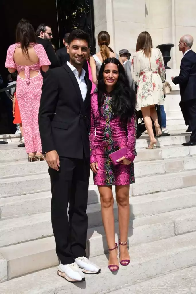 También fueron Javier Pastore y su mujer, Chiara Picone. Él combinó un traje negro con zapatillas blancas; ella eligió un vestido satinado con estampa símil animal print, con clutch y sandalias al tono.