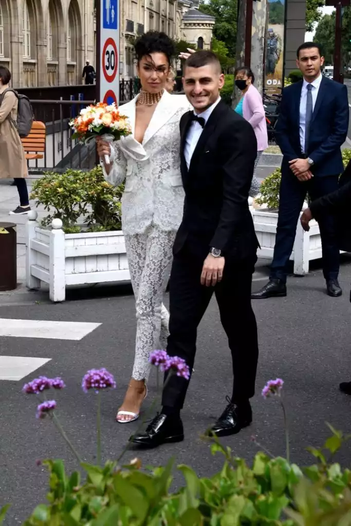 Con una ceremonia súper glam, se casó en París el futbolista italiano Marco Verratti con su novia modelo Jessica Aidi días después de vencer a Inglaterra en la Eurocopa. Es el segundo casamiento del jugador: su ex mujer es Laura Zazzara, con quien tuvo dos hijos. La novia impactó con un audaz traje de encaje blanco.