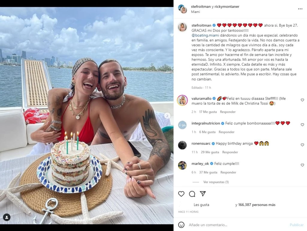 Además, escribió en su posteo: "Bye bye 27. GRACIAS mi Dios por tanto. Celebrando en familia, en amigos. Festejando la vida. No nos damos cuenta a veces la cantidad de milagros que vivimos día a día.. soy cada vez más consciente. Y lo agradezco".