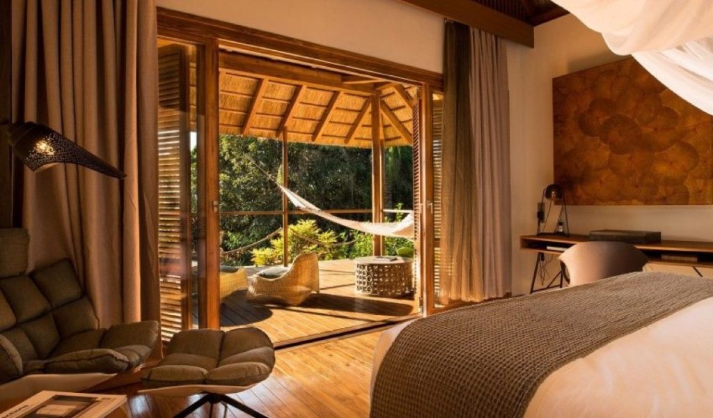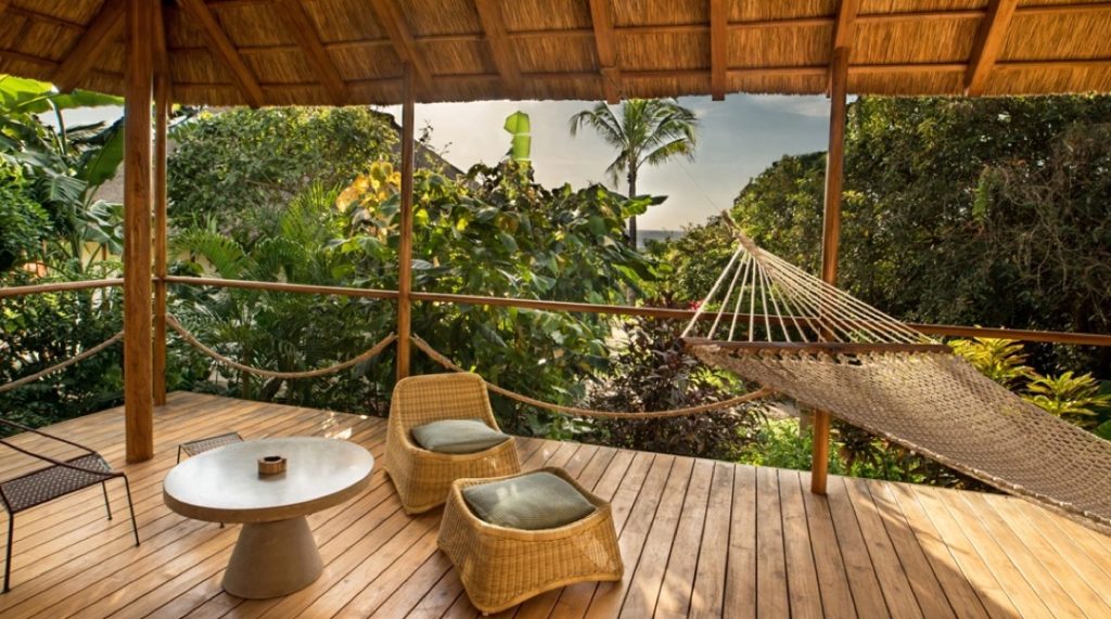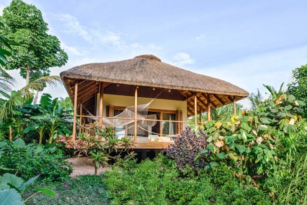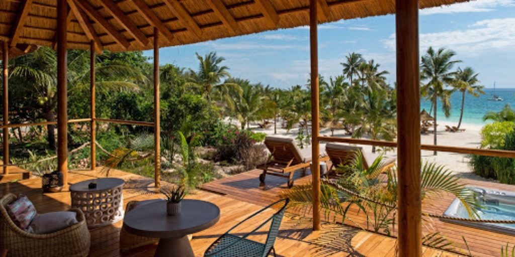 Jestico + Whiles, la firma de diseño con sede en Londres y Praga, pensando en la sostenibilidad y la hospitalidad del siglo XXI, crearon una arquitectura ecológica que captura la atmósfera única de las islas, con materiales locales, nyasi tradicional (hierba) y techos de tejas. Wanda y Mauro están en una de las cabañas con jacuzzi privado en su terraza.