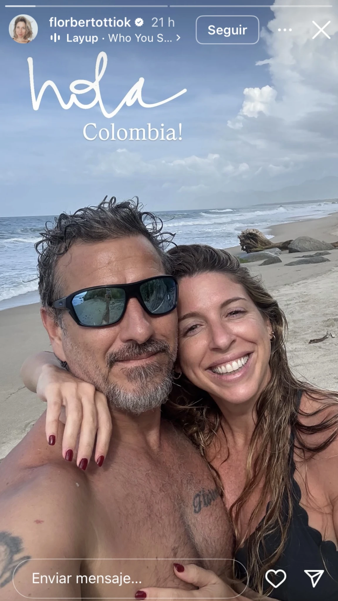"Hola Colombia!", escribió en sus historias de Instagram, anunciando su llegada al país. En la imagen, se la ve abrazada a Amador con el mar de fondo. Horas más tarde, volvió a compartir una postal similar: ambos sonrientes, con el paisaje playero de fondo. En ambas fotos, eligió la canción Who You Share It With, de Layup, un tema ideal para potenciar el momento romántico.