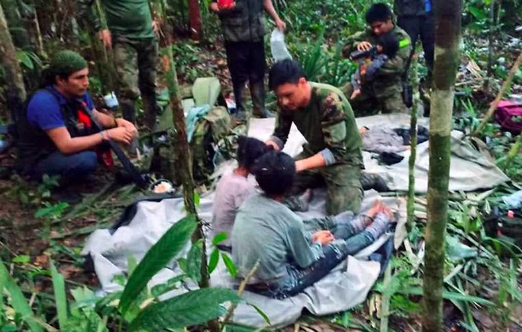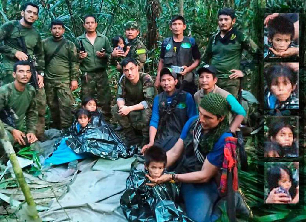 Tras una intensa búsqueda, las Fuerzas Militares confirmaron el rescate de Lesly Mucutuy (13 años), Soleiny Mucutuy (9 años), Tien Noriel Ronoque Mucutuy (4 años) y Cristin Neriman Ranoque Mucutuy (11 meses), cuatro hermanos pertenecientes a la comunidad huitoto.