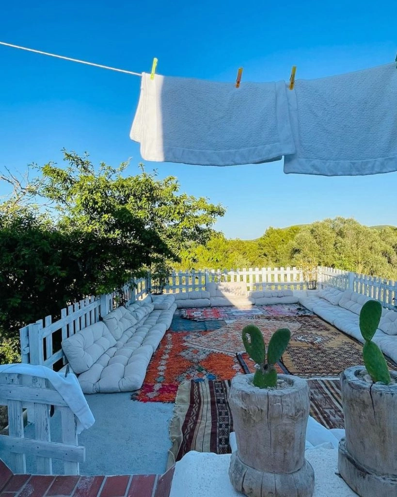Las postales traducen la tranquilidad del lugar en el que se alojó la pareja, con una decoración rústica, flores, plantas y una ambientación característica de la zona.