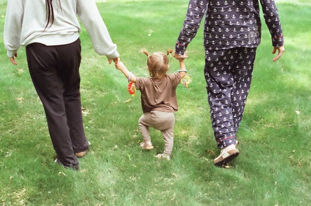 En las imágenes que posteó, se la pudo ver a la actriz jugando con su descendiente en un parque. Ambas corrían, miraban una laguna y posaban con el perrito de la artista, Pilaf, de la raza chihuahua.