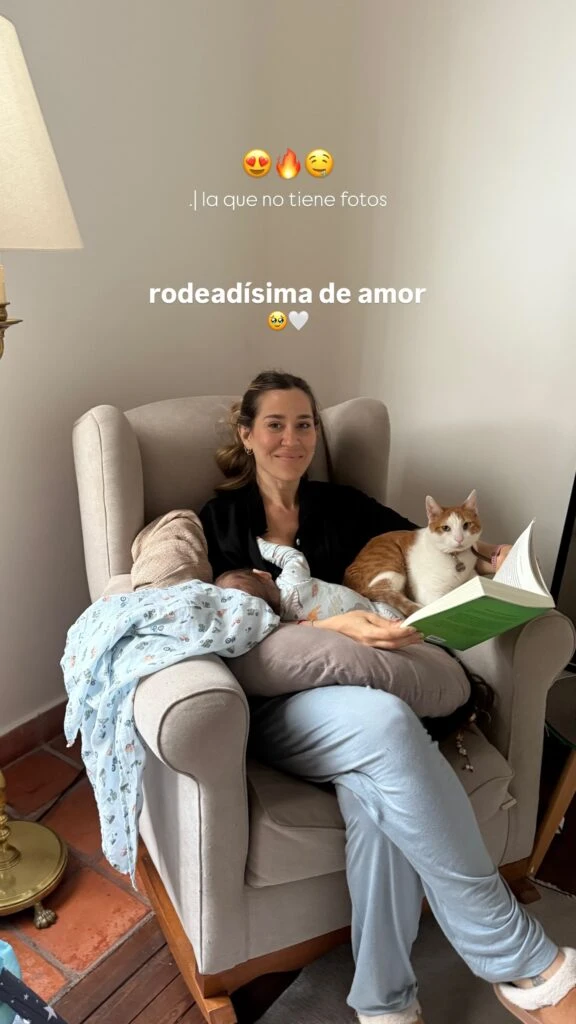 El mensaje no tardó en tener efecto. Horas más tarde, Matías compartió una tierna foto de Jimena en pleno rol de mamá. En la imagen se la ve sonriente, sentada en el sillón, con Arturo en brazos, un libro en la mano y el gato de la familia acompañando la escena.
