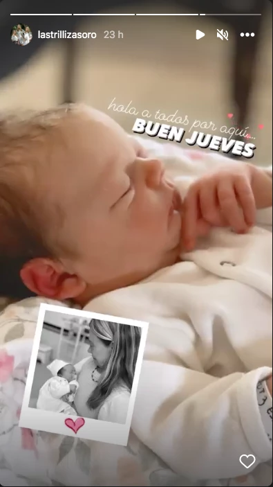 Luego, las Trillizas compartieron una foto de la beba recién nacida con una leyenda que dice "Hola a todos por aquí. Buen jueves". La abuela de Esmeralda sumó una imagen de ella misma sosteniendo en brazos a su hija Paulina recién nacida, con el agregado de un emoji de corazón.