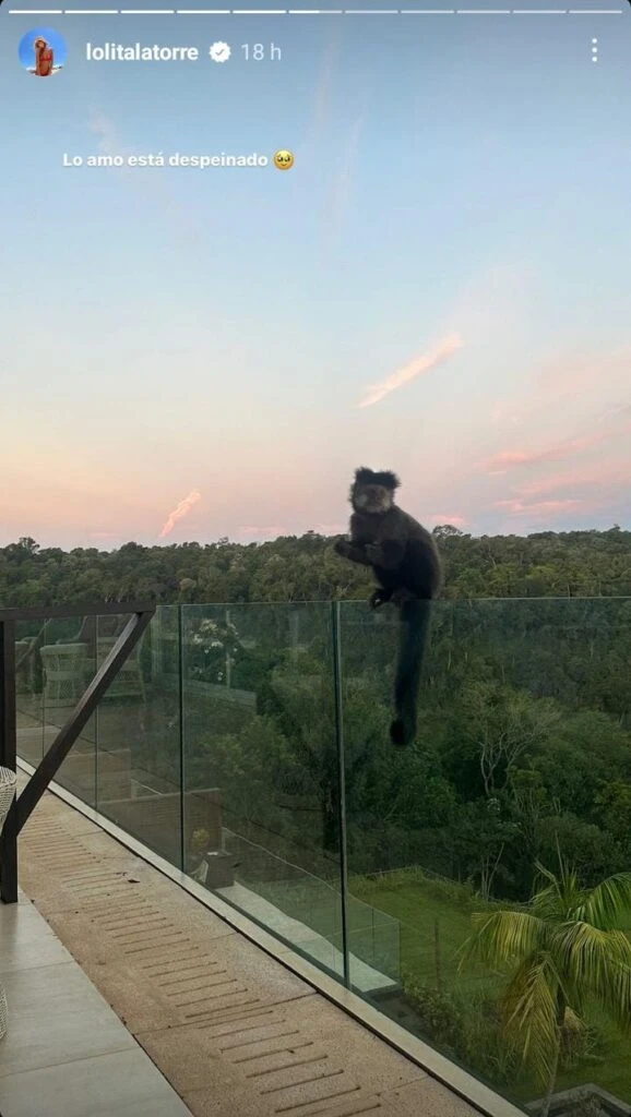 Horas después, la influencer publicó la maravillosa vista desde el hotel donde se alojaron, situado en medio de la selva. Ambos compartieron un almuerzo rodeados de la naturaleza y además, mostraron la visita de un pequeño visitante, un mono autóctono.