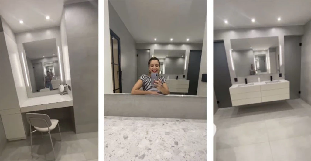 Lo cierto es que las complicaciones no la desalentaron y continuó con los trabajos. En las últimas horas compartió cómo quedó el baño que diseñó a su gusto: “Antes y después”, escribió la conductora de “Bienvenidos a bordo” al postear un video en su cuenta de Instagram que muestra cómo quedó el ambiente.
