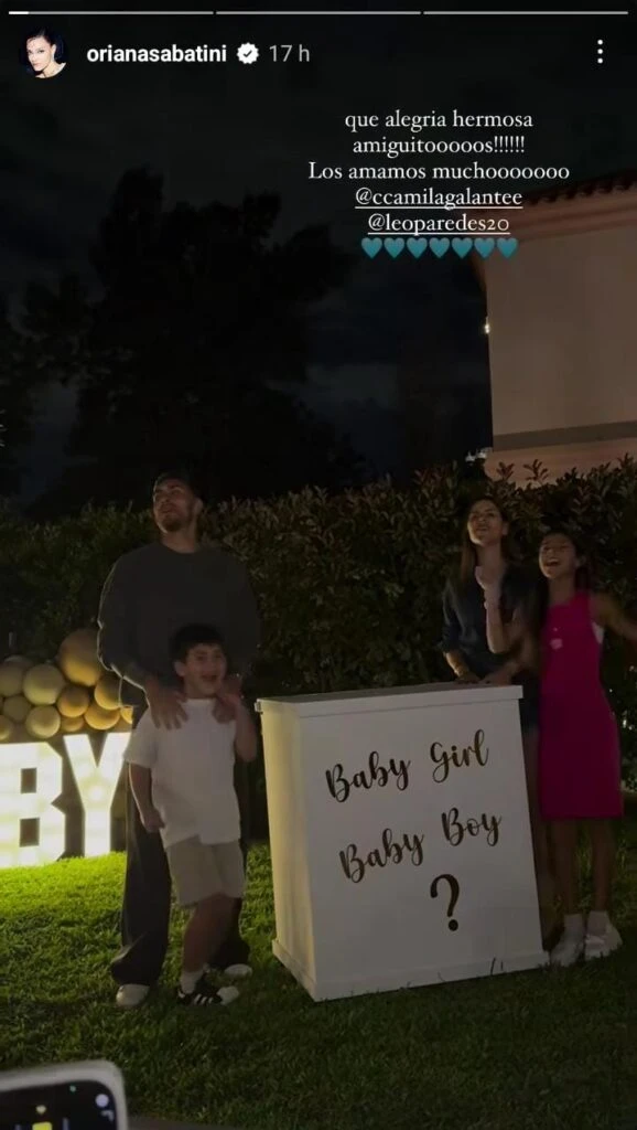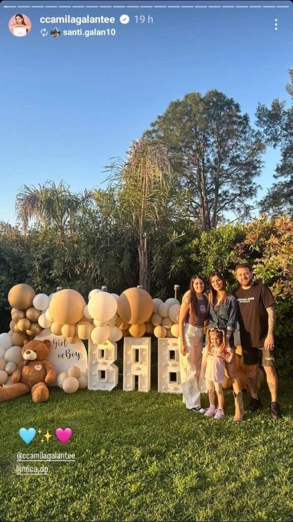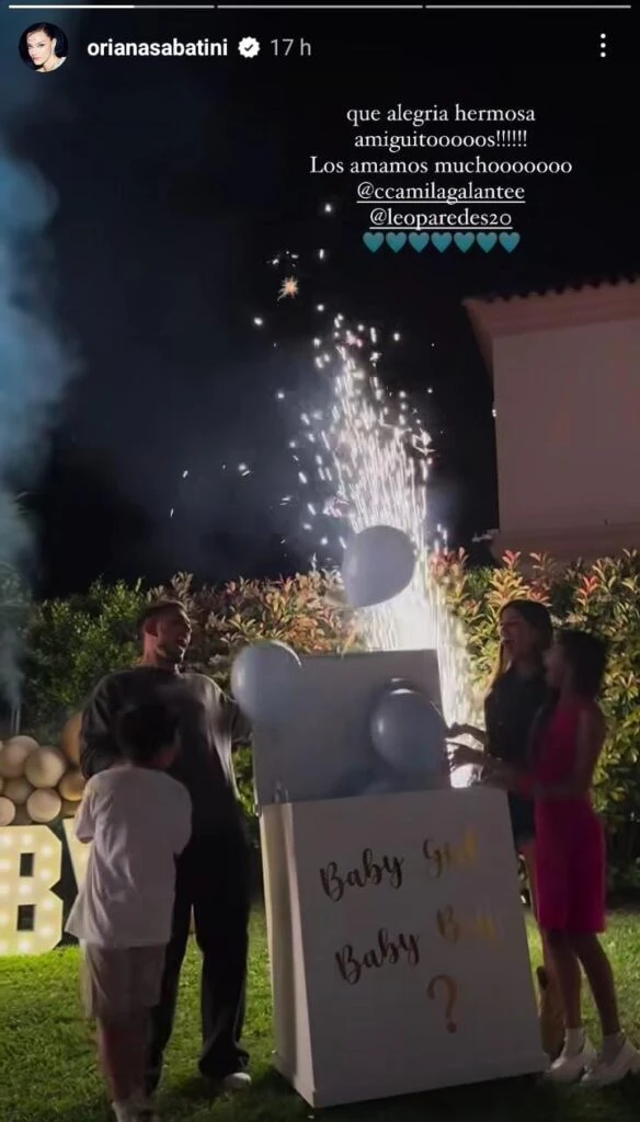 A través de las redes sociales, la pareja compartió algunas fotografías de este evento inolvidable donde se anunció tanto el sexo como el nombre del bebé. Una de las invitadas fue Oriana Sabatini, pareja de Paulo Dybala, quien expresó su felicidad de compartir este momento. "Qué alegría hermosa amiguitos, los amamos mucho", escribió la cantante.