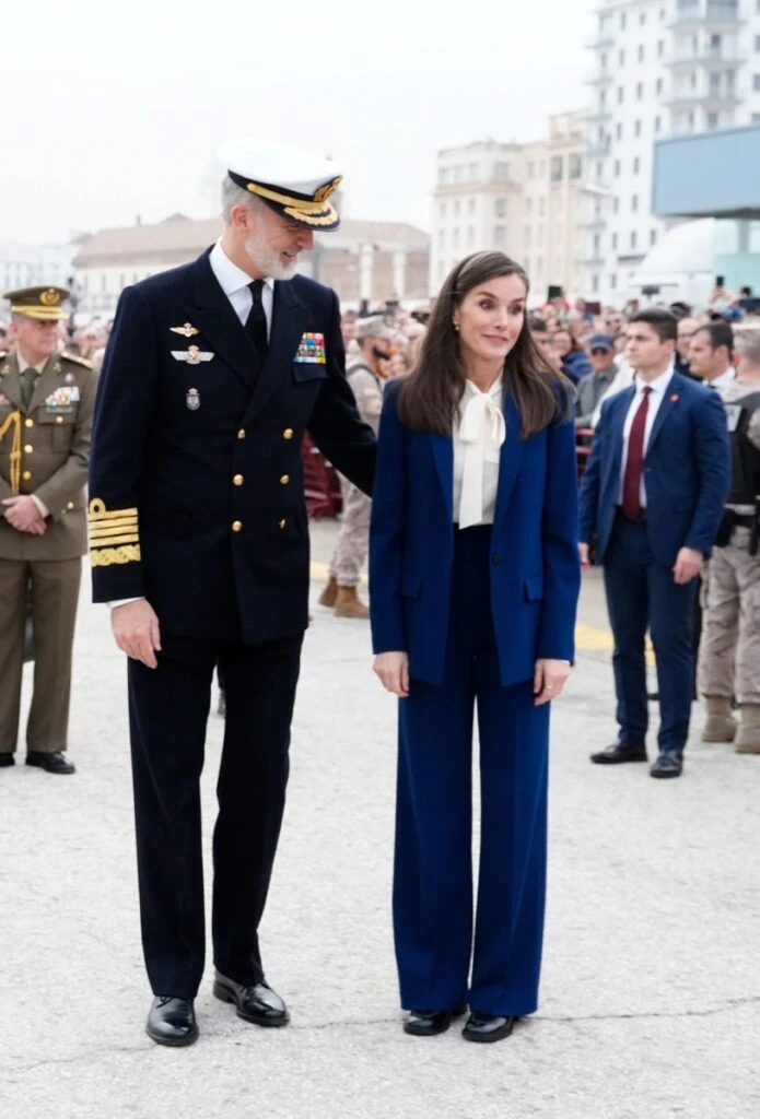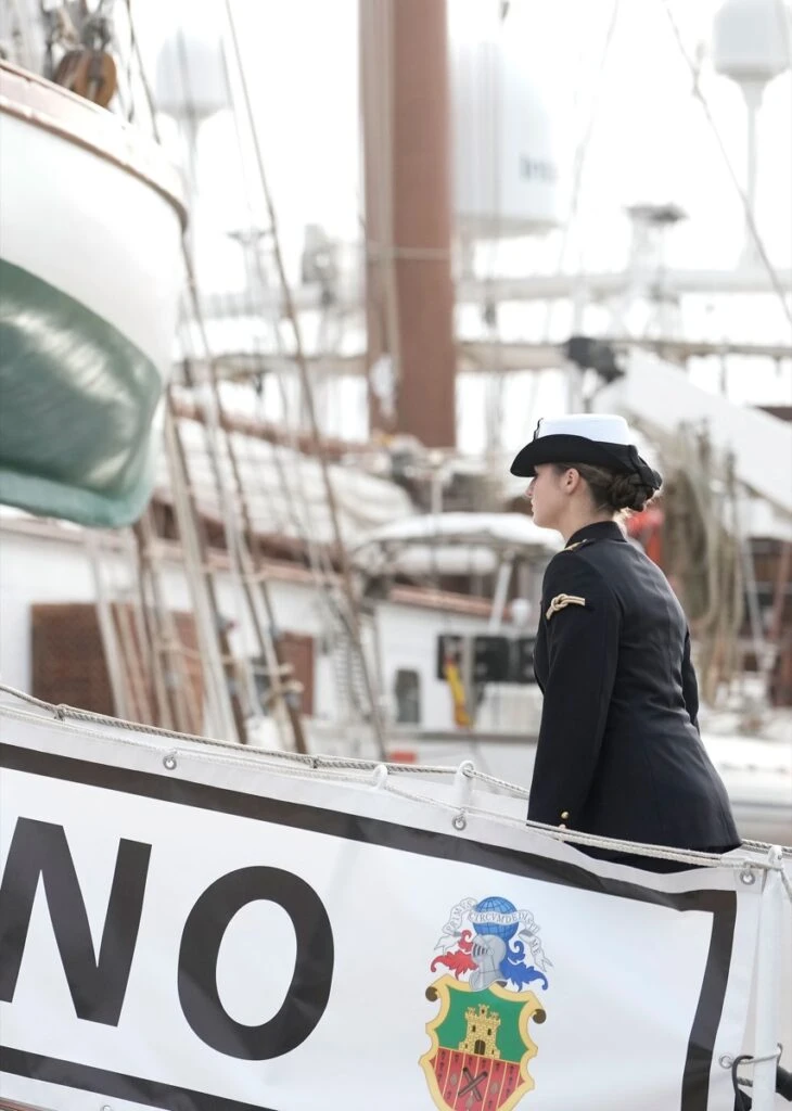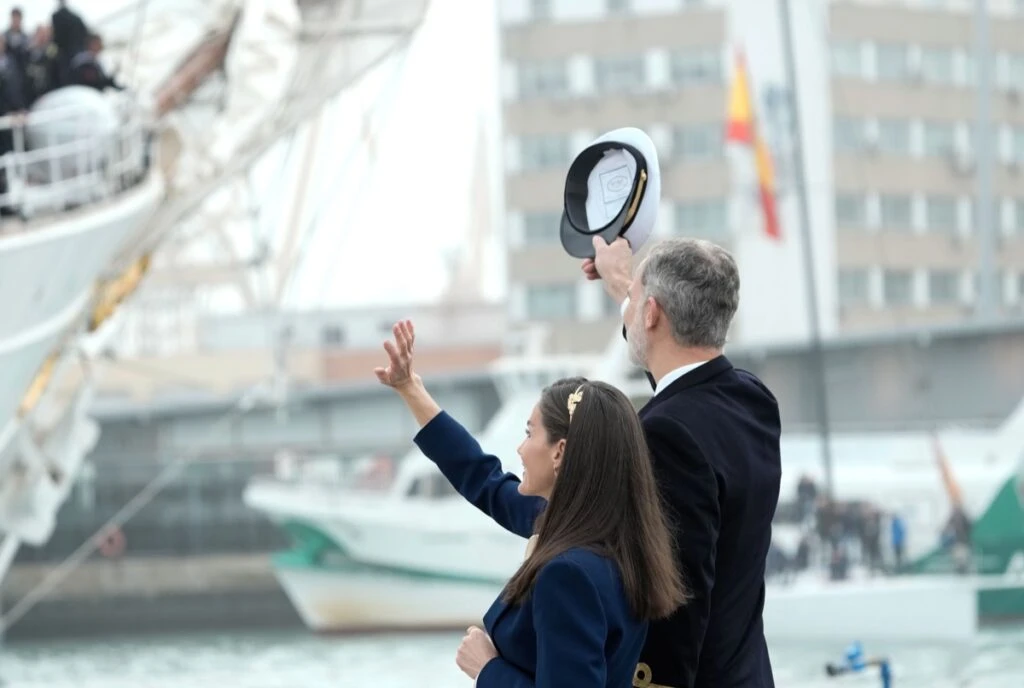 Allí, la soberana y su marido, el rey Felipe VI, presenciaron el momento en el cual tanto Leonor como sus compañeros de estudios subieron al barco, se formaron y partieron.