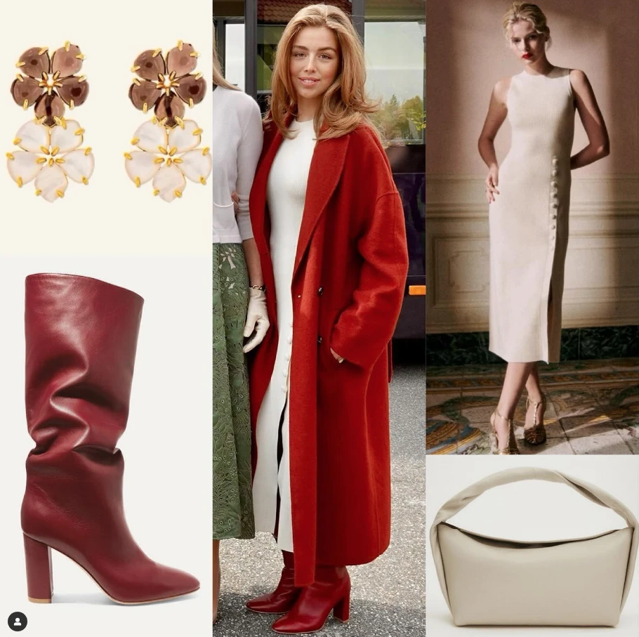 Alexia en tanto, prefirió un vestido recto en color blanco de la firma Sezane y un importante tapado rojo de Sissy Boy, con botas de caña alta al tono de Gianvitto Rossi. Sumó una cartera de cuero en color nude de la marca Massimo Dutti.