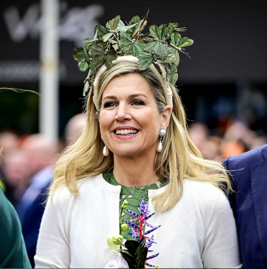 El look de Máxima: vestido verde e importante tocado hecho a mano