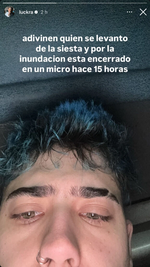 Durante las prolongadas jornadas de temporal en Buenos Aires, Luck Ra compartió a través de su cuenta de Instagram que se encuentra varado en un micro, sin certezas de cuando podrá continuar destino.