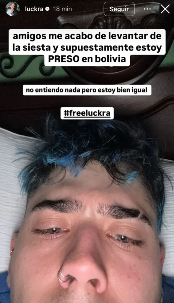 Sin embargo, el artista de 26 años desmintió todo desde sus redes: "Amigos me acabo de levantar de la siesta y supuestamente estoy preso en Bolivia", expresó el cantante por medio de sus historias de Instagram.