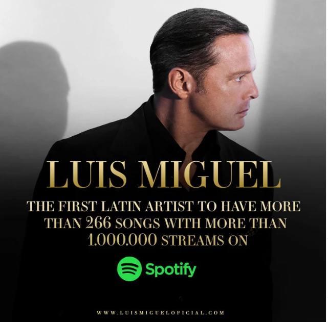 Aunque ya hace cinco años que Luis Miguel no lanza nuevo material discográfico (su última producción fue, en 2017, México en la piel), los temas del astro mexicano siguen siendo una sensación: en marzo de 2022 se convirtió en el primer cantante latinoamericano en tener más canciones que superan el millón de reproducciones en Spotify. Son 266 canciones de su repertorio que superan esta marca, dándole el estatus de ser una de las máximas estrellas de la actualidad. Ahora te puedes marchar, con más de 378 millones de streams; La incondicional, con más de 318 millones; Hasta que me olvides, con más de 233 millones; Culpable o no, más de 221 millones y La media vuelta, con más de 170 millones de reproducciones.