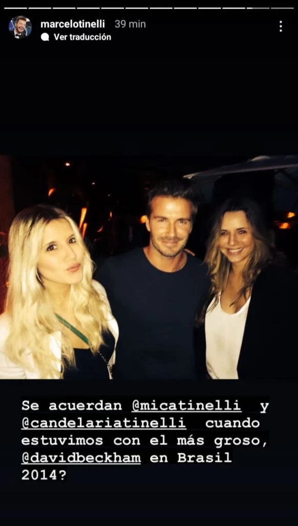 "¿Se acuerdan cuando estuvimos con el más groso en Brasil 2014?", publicó Tinelli vía stories junto a una imagen que, hasta el momento, no había sido compartida. "Las ví muy felices con David", había revelado sobre este inesperado encuentro que alegró muchísimo a la familia Tinelli. De hecho, Marcelo expresó en varias oportunidades su fanatismo por el ex jugador e incluso se habló de la posibilidad de que jugara en las filas del Bolívar de Bolivia contra San Lorenzo.
