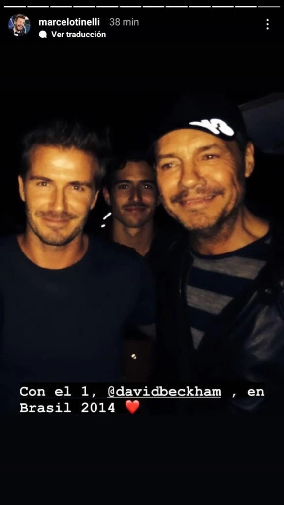 "Con David Beckham y @marceloclaure, dueño del Bolívar, en una noche divina en Río. Juega David la Copa?? Vamos Ciclón!", había publicado en aquel momento, junto a una fotografía donde se lo ve abrazado a Beckham. Quienes también estuvieron presentes fueron sus hijas Mica y Cande Tinelli, que también tuvieron la oportunidad de conocerlo.