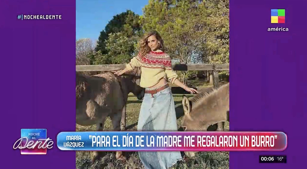 "Los animales me encantan todos, yo tengo burros, Luisa y Hugo, y tengo dos ponys chiquititos que todavia no le pusimos nombre. Me van regalando para el día de la madre, ovejas, vacas, burros. Mis hijos son muy ocurrentes", concluyó.