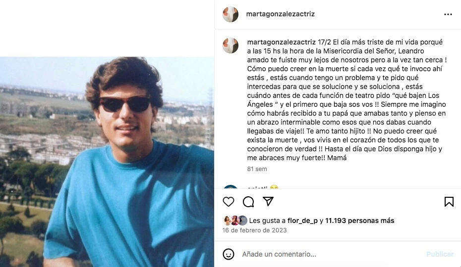 "He sufrido mucho pero creo que de verdad la muerte no existe. Cuando lo nombro a Leandro, cuando lo necesito. Leandro está, porque está acá", aseguró Marta en relación a su hijo que murió cuando sólo tenía 29 años. Este era fruto de su relación con el ex futbolista Chiche Sosa y su partida la marcó para siempre.
