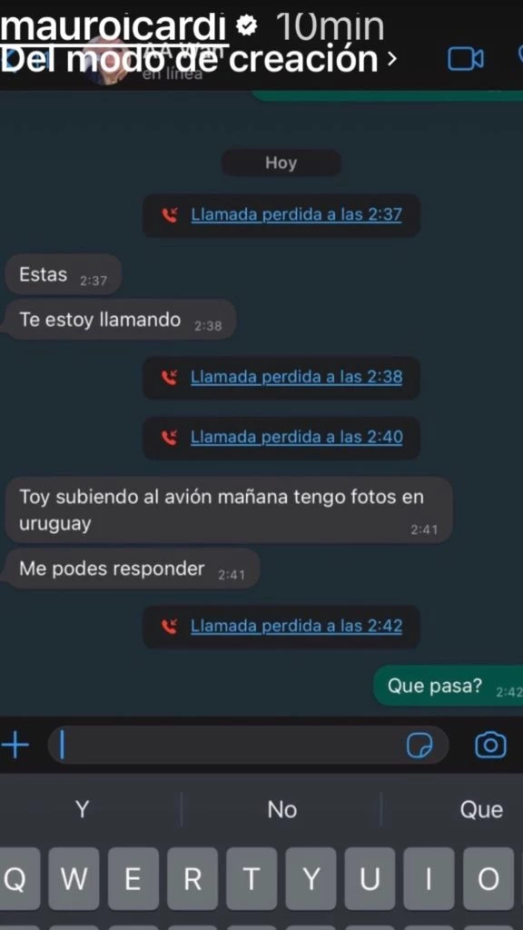 En una de estas capturas de pantalla, que fueron difundidas por Chismer de Ker, Wanda llama de forma intermitente a Icardi y éste no le responde. "Cuando te la das de soltera o decís serlo pero sos re tóxica", escribió el futbolista del Galatasaray y acto seguido, compartió una discusión donde ella se molesta porque él no quiere decir dónde estaba.