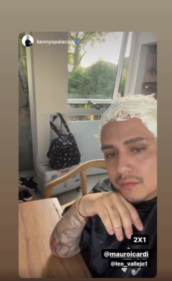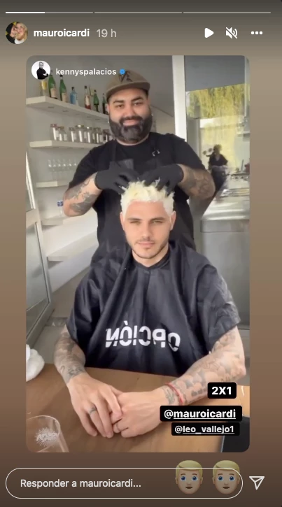 Tal como puede verse en los videos que publicó, en su cambio de look estuvo involucrado Kennys Palacios, el estilista que siempre acompaña a Wanda, y también el peluquero Leo Vallejo, que aplicó el dos por uno y tiñó a Kennys también.